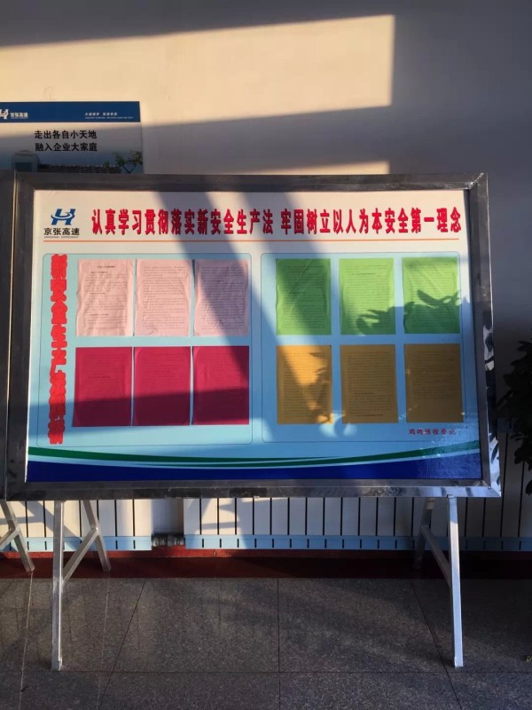 為扎實(shí)做好新安全法的宣貫學(xué)習(xí)工作,雞鳴驛收費(fèi)站于近日制作了專題宣傳展板,為職工學(xué)習(xí)新安全法提供平臺(tái)。