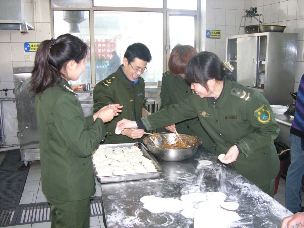 這天,食堂的師傅早早就準(zhǔn)備好了包餃子的材料,十多名職工一起幫忙包餃子。大家圍在一起各顯身手,揉面,搟皮,包餃子,雖然有的同志手法略顯生疏,但是干得卻是十分帶勁,一絲不茍。大家邊包餃子邊交談,歡樂的笑聲不時傳來,就像一家人一樣其樂融融。熱騰騰的餃子出鍋了,大家圍座在一起津津有味地吃著自己包的餃子,不但驅(qū)走了冬日的嚴(yán)寒,心里更是有種別樣的溫暖。