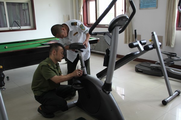 6月17日,;劬⒗顪Y兩名同志發(fā)現(xiàn)健身房部分健身設(shè)施出現(xiàn)螺絲松動(dòng)現(xiàn)象,便自發(fā)找來維修工具對(duì)設(shè)施進(jìn)行維修保養(yǎng)。兩人邊摸索邊修理,將因螺絲松動(dòng)而不能使用的健身自行車重新修好,隨后又對(duì)其他健身器材進(jìn)行加固保養(yǎng),保證了設(shè)施正常使用。