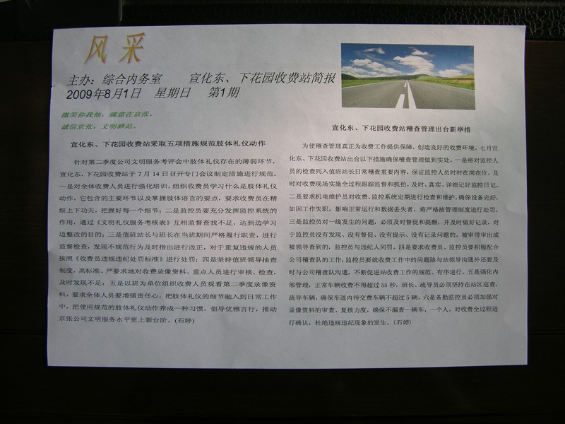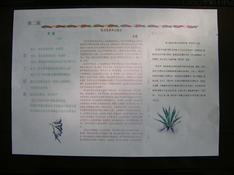 8月1日,宣化東、下花園收費(fèi)站正式創(chuàng)辦《風(fēng)采》簡(jiǎn)報(bào),第一期已分發(fā)至各班組。