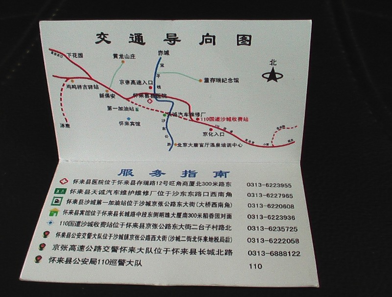 隨著高速公路車流高峰期的到來,一些司機為避讓高速公路通行不暢,從京張高速公路轉到110國道行駛。但由于對行車路線和方向不是很熟悉,在110國道沙城收費站不斷有詢問行駛路線的人員。為更好地為過往人員提供便利的服務,110國道沙城收費站經(jīng)過一個月的精心設計、反復修改,為過往司乘人員制作了《旅游出行溫馨服務卡》。此卡附有交通導向圖,以本站為中心,110國道為主線,東至北京延慶,西到下花園,南北寶平線貫穿其中,沿線標注當?shù)芈糜物L景區(qū)、汽車維修、醫(yī)院、加油站等服務地點;服務指南詳細說明了路徑較近有知名度的醫(yī)院、汽車維修廠、賓館及公安部門的詳細地址和電話,服務卡最后還標注了京張公司的服務宣傳語,圖文并茂。