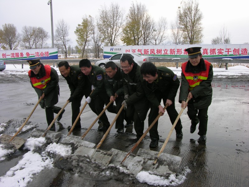 11月1日,一場揚(yáng)揚(yáng)灑灑的大雪襲卷了整個華北地區(qū),前幾天還是綠意盎然的收費廣場,瞬間變成了銀裝素裹的天地,2009年的第一場雪在帶給人們驚喜之余,也給道路暢通和出行安全帶來較大不便。為了保證站口安全暢通,宣化東、下花園收費站采取有效措施,及時啟動了除雪保暢應(yīng)急預(yù)案。