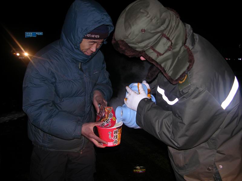 由于北京八達(dá)嶺高速公路封閉,高速交警在東花園匝道站口對大貨車限行,匝道站廣場滯留了許多重載貨車。據(jù)多方了解,預(yù)計(jì)這些車輛在近兩天內(nèi)都無法進(jìn)京,而當(dāng)天的氣溫已降至零下18度,天氣異常寒冷。面對這種情況,站領(lǐng)導(dǎo)果斷決定,盡最大努力為這些受困司機(jī)解決實(shí)際困難。大家立即行動(dòng)起來,準(zhǔn)備開水和食品。站里所有的暖壺都被收集起來,又派人專門到臨近的東花園鎮(zhèn)上買來十多箱方便面。在站長朱秀琴的帶領(lǐng)下,大家提著裝滿開水的暖瓶、帶著一箱箱裝滿溫情的方便面來到匝道站。在寒風(fēng)中,大家挨個(gè)敲著車窗,詢問司機(jī)是否需要水和食品。司機(jī)們接過熱水、捧著方便面,連連致謝。為了滿足所有受困司機(jī)的需求,大家一趟趟往返站區(qū)灌裝開水和食品,直到發(fā)放到最后一輛車。