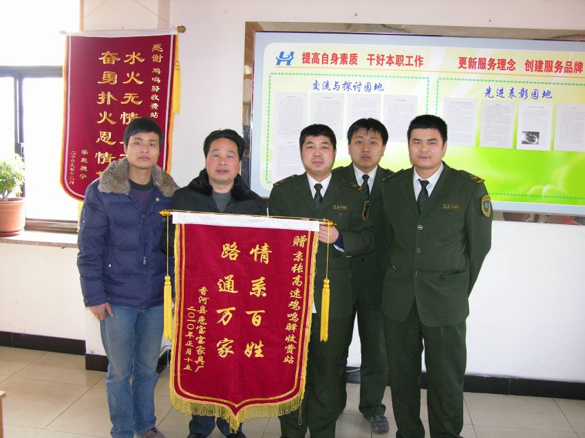 聽(tīng)來(lái)人說(shuō)明來(lái)意,孟憲勇立即向值班站長(zhǎng)說(shuō)明情況后,帶領(lǐng)默風(fēng)雷、馬潤(rùn)予兩名同志徒步隨兩人到停車(chē)處幫助父子推車(chē)。由于天冷還下著雪,路面有些光滑,每前進(jìn)一步都很吃力。大家相互鼓勁兒,經(jīng)過(guò)半個(gè)多小時(shí)的努力,終于將車(chē)推出了收費(fèi)站。