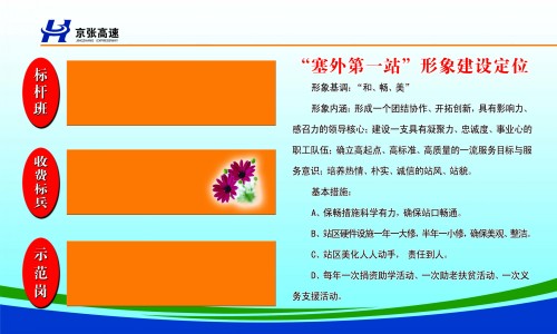 另外,該站將原有的宣傳展板進(jìn)行了重新的排版和制作,改變了以往單調(diào)、呆板的模式,結(jié)合公司2010年工作任務(wù)目標(biāo),融入了東花園收費(fèi)站“以車為本”的服務(wù)文化內(nèi)涵、“塞外第一站”形象建設(shè)定位等內(nèi)容,成為該站品牌文化建設(shè)的一個(gè)亮點(diǎn)。(東花園收費(fèi)站 許莉莉)