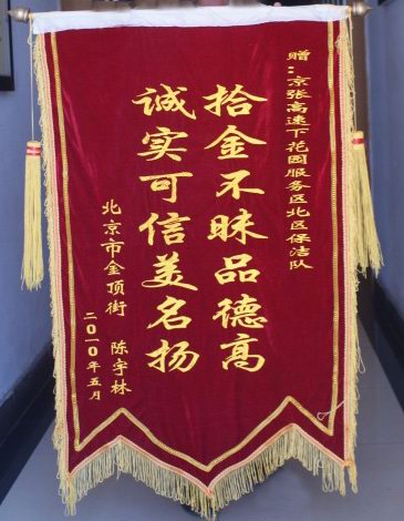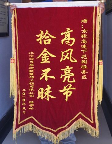 5月18日中午時(shí)分,下花園服務(wù)區(qū)保潔工韓建萍在北區(qū)衛(wèi)生間附近工作時(shí),撿到一個(gè)棕色的男士錢包。當(dāng)時(shí)未發(fā)現(xiàn)有人在找東西,于是她立即把錢包交到了服務(wù)區(qū)辦公室。經(jīng)清點(diǎn),包里共有現(xiàn)金4480余元,銀行卡3張,身份證1張,名片1張,身份證上的姓名叫陳XX。服務(wù)區(qū)經(jīng)理通過名片上的電話,找到失主的生意伙伴,并通過他與失主取得聯(lián)系。由于失主已遠(yuǎn)在外地,不能及時(shí)趕來領(lǐng)取,商定由委托人攜帶委托書代為領(lǐng)取。5月21日,遺失錢物終于回到了失主手中。為表示感謝,失主給服務(wù)區(qū)和拾金不昧的韓建萍分別送來了錦旗。(下花園服務(wù)區(qū) 鄭海燕)