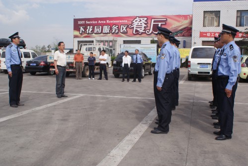 為進(jìn)一步加強(qiáng)安全生產(chǎn)工作,下花園服務(wù)區(qū)根據(jù)實(shí)際情況,通過(guò)協(xié)商,由下花園派出所方樹(shù)成隊(duì)長(zhǎng)帶隊(duì),到服務(wù)區(qū)對(duì)保安人員進(jìn)行安保訓(xùn)練指導(dǎo)。從