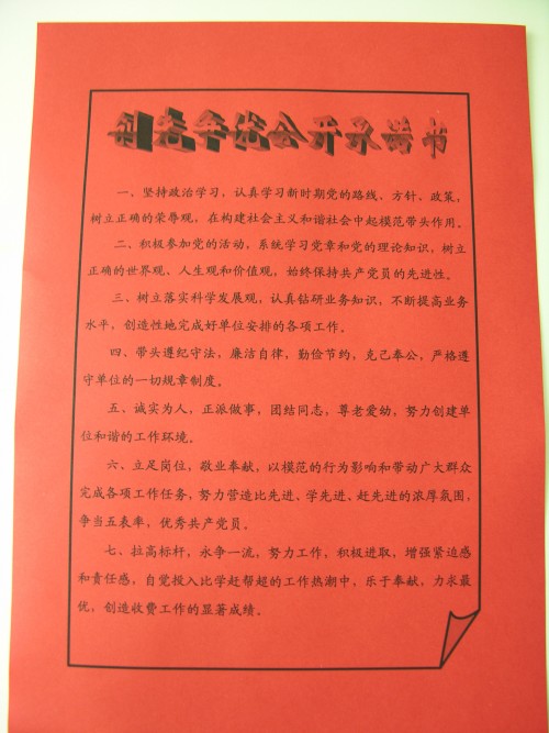 全體黨員結(jié)合崗位職責(zé)和自身實際,作出公開承諾,黨支部將全體黨員的承諾進(jìn)行匯總,以書面形式向廣大群眾進(jìn)行公開。全體黨員力爭做到“五個帶頭”,即“學(xué)習(xí)提高帶頭、爭創(chuàng)佳績帶頭、優(yōu)質(zhì)服務(wù)帶頭、遵紀(jì)守法帶頭、弘揚正氣帶頭”,立足本職崗位,創(chuàng)先爭優(yōu),開拓創(chuàng)新,無私奉獻(xiàn),爭做崗位先鋒,為公司、站發(fā)展做出積極貢獻(xiàn)。(110國道沙城收費站 王輝)