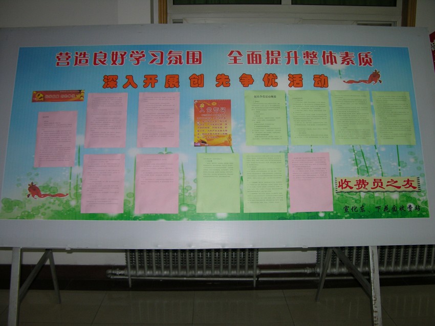 為在全站營(yíng)造深厚的“創(chuàng)先爭(zhēng)優(yōu)”活動(dòng)氛圍,進(jìn)一步推動(dòng)“創(chuàng)先爭(zhēng)優(yōu)”活動(dòng)的深入、有效開展,近日,宣東、下花園收費(fèi)站結(jié)合實(shí)際情況推出了“創(chuàng)先爭(zhēng)優(yōu)”活動(dòng)宣傳專欄。