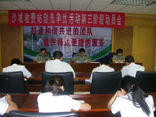 會(huì)上,馮站長(zhǎng)帶領(lǐng)大家傳達(dá)學(xué)習(xí)了公司《創(chuàng)先爭(zhēng)優(yōu)活動(dòng)實(shí)施方案》,總結(jié)了我站前階段創(chuàng)先爭(zhēng)優(yōu)活動(dòng)開(kāi)展情況,并對(duì)第三階段創(chuàng)先爭(zhēng)優(yōu)工作進(jìn)行了安排部署。他指出,我站創(chuàng)先爭(zhēng)優(yōu)活動(dòng)前兩個(gè)階段成績(jī)突出,站黨支部在組織創(chuàng)新、黨性教育、服務(wù)群眾、崗位奉獻(xiàn)等方面都采取了卓有成效的措施,開(kāi)展了一系列活動(dòng),取得了良好的效果。廣大黨員在活動(dòng)中作出了突出貢獻(xiàn)。按照創(chuàng)先爭(zhēng)優(yōu)活動(dòng)的總體安排和部署,從今年7月到明年6月,創(chuàng)先爭(zhēng)優(yōu)活動(dòng)進(jìn)入第三階段即“對(duì)標(biāo)定位,晉檔升級(jí)”階段。我站要按照公司《創(chuàng)先爭(zhēng)優(yōu)活動(dòng)實(shí)施方案》的要求,結(jié)合站內(nèi)實(shí)際,繼續(xù)做好創(chuàng)先爭(zhēng)優(yōu)活動(dòng)第三階段的工作,將創(chuàng)先爭(zhēng)優(yōu)活動(dòng)與日常工作結(jié)合起來(lái),將崗位練兵比武活動(dòng)和創(chuàng)先爭(zhēng)優(yōu)活動(dòng)第三階段工作結(jié)合起來(lái),全面開(kāi)展對(duì)標(biāo)定位、認(rèn)責(zé)承諾、奪旗爭(zhēng)星、亮牌示范等活動(dòng),力爭(zhēng)在第三階段創(chuàng)先爭(zhēng)優(yōu)活動(dòng)中做出亮點(diǎn)、做出特色。(沙城收費(fèi)站 趙海濤)