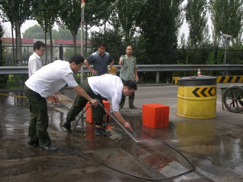 收費車道闖崗阻車器經過長期使用,造成大量淤泥滯留在阻車器內,無法排出,影響正常使用。 8月31日上午,在副站長馮善軍的帶領下,由機電、機動以及當班疏導員等人對收費車道闖崗阻車器進行全面沖洗。由于阻車器縫隙太小,只是憑借高壓水槍的沖擊力無法徹底將污垢排出,一些死角必須用改錐或鐵棍等工具將泥搗碎,再用水槍猛沖;同時,收費一道、二道距離水管處較遠,而高壓水槍的水管又不夠長度,只能用水桶將水一趟一趟運送到收費車道內,才能保證繼續(xù)正常的沖洗。二個多小時過去了,共五條車道的阻車器全部清洗完畢,所有道釘可以正常啟動,及時保障了收費工作的順利進行。(沙城收費站 劉曉靜)