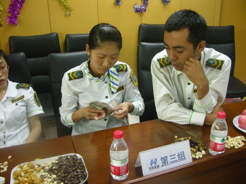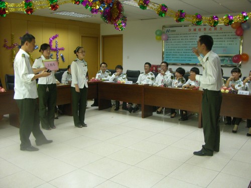 9月11日,沙城收費(fèi)站開(kāi)展了“迎中秋”崗位練兵技能對(duì)抗賽。本次比賽分為團(tuán)體和個(gè)人兩個(gè)大項(xiàng),中間穿插開(kāi)展各種趣味游戲。團(tuán)體比賽包括收費(fèi)崗位知識(shí)問(wèn)答比賽(搶答題、必答題、風(fēng)險(xiǎn)題)、你來(lái)比劃我來(lái)猜、點(diǎn)鈔比賽三個(gè)項(xiàng)目,采用自由組隊(duì)的形式,每隊(duì)五人,分五隊(duì)進(jìn)行角逐;個(gè)人項(xiàng)目包括肢體禮儀手勢(shì)、點(diǎn)鈔技能、搶答比賽三個(gè)項(xiàng)目,以員工自愿參加的方式進(jìn)行比賽。本次比賽還專門(mén)成立了“崗位練兵技能對(duì)抗賽賽領(lǐng)導(dǎo)小組”由馮善軍副站長(zhǎng)任組長(zhǎng),確保了比賽的公正和嚴(yán)謹(jǐn)。經(jīng)過(guò)近三個(gè)小時(shí)的角逐,職工們比技能、比速度,最終決出了團(tuán)體及個(gè)人一、二、三等獎(jiǎng)。