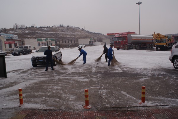 12月2日早晨5時,張家口大部分地區(qū)降了今年以來第一場雪,下花園服務(wù)區(qū)辦公室早上七點(diǎn)組織餐廳服務(wù)員,保潔人員及時清理廣場積雪,于早上9點(diǎn)23分清理干凈,由于目前仍下著小雪,約20分鐘清理一次。避免因地面滑而使得顧客摔倒,保證顧客安全出行。(下花園服務(wù)區(qū) 鄭海燕)
