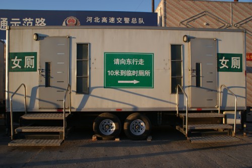 五是洗手間在客流量大的情況下,啟用車載流動女衛(wèi)生間,同時搭建圍擋臨時衛(wèi)生間供廣大司乘人員如廁。