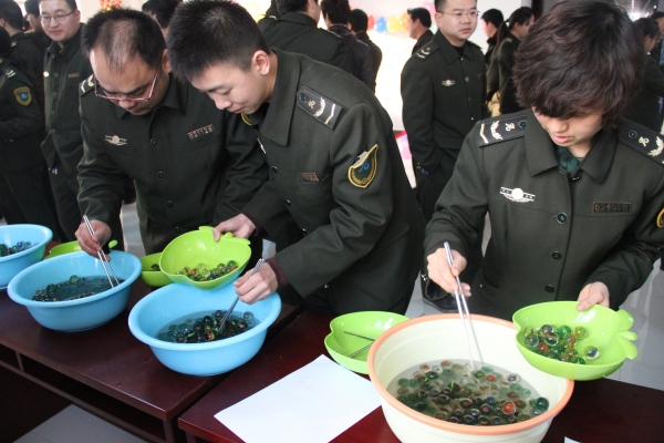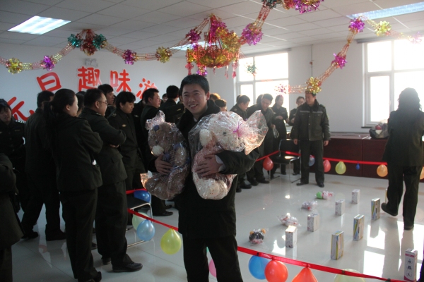 此次游園活動內容新穎、獎品豐富。共設四個項目,分別是壘易拉罐、貼鼻子、套圈、水中夾珠。在精心布置的游戲場地上,各項活動井然有序地開展,全體職工都摩拳擦掌、滿懷欣喜地參與活動:水中夾珠與壘易拉罐都是考驗參與者的沉著與冷靜;貼鼻子則是靠實驗者的觀察力與心數,一旁的觀眾卻是比實驗者還要著急;套圈或許是平衡力與巧勁的結合吧……一上午時間活動室時時傳來獲獎的笑聲與歡呼聲。