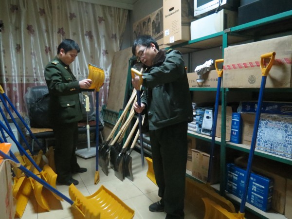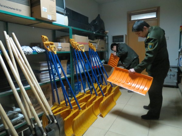 下花園收費站提前做好除雪工具的準備工作