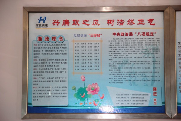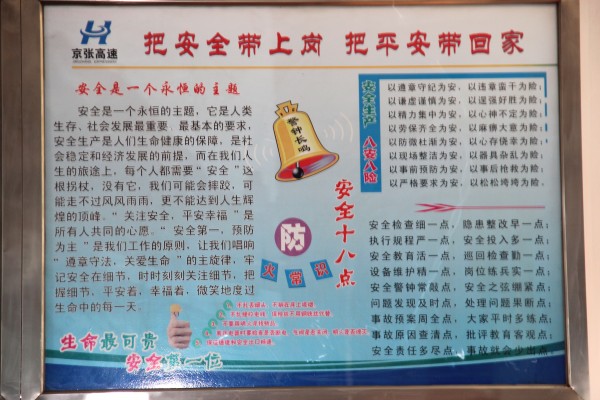 為深入學習貫徹全國兩會會議精神,切實加強黨風廉政和安全生產(chǎn)宣教工作,近日,沙城收費站分別策劃制作了主題為“興廉政之風 樹浩然正氣”、“把安全帶上崗 把平安帶回家”的廉政警示和安全生產(chǎn)教育展板。兩塊展板主題內(nèi)容突出、形式新穎。展板的展出意在使職工們在欣賞中得到啟示,在討論中引發(fā)思考,營造了良好的廉政文化和安全生產(chǎn)氛圍,使職工的反腐倡廉和安全生產(chǎn)意識不斷提高。(沙城收費站 趙海濤)
