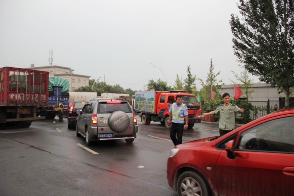 下午三時,交通管制仍在進行,中班人員以最快的速度完成交接。此時,等待上高速的車輛已經排了好幾公里,下道車流量越來越大,小型車輛上道的通行空間也越來越窄。上下道車輛幾乎將整個廣場堵得水泄不通。一時間烏云密布,電閃雷鳴,很快下起了大雨,給本來就嚴峻的保暢工作帶來了更大的難題。大雨中每個人全身濕透,但沒有一個人退縮。隨著夜幕降臨,到晚上六點半,交通管制結束,直到晚上七點多,收費廣場才逐漸恢復了正常的通車秩序。通過六個多小時的奮戰(zhàn),沙城站順利完成了艱巨的保暢任務,大家的臉上都露出了欣慰的笑容。(沙城收費站 劉曉靜)
