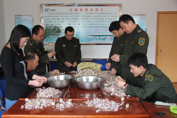 職工們?cè)谟性苑N經(jīng)驗(yàn)老大哥的傳授下邊剝除蒜皮,邊聊些栽種心得,并嚴(yán)格挑選優(yōu)良蒜種到新開辟的綠色菜地栽種,忙得不亦樂乎。職工們?cè)谡麄(gè)勞作過程中不但鍛煉了身體,還學(xué)到了不少課本上沒有的實(shí)際操作知識(shí),沙城收費(fèi)站這個(gè)大集體的向心力和凝聚力也得到顯著增強(qiáng)。(沙城收費(fèi)站 高麗贇)