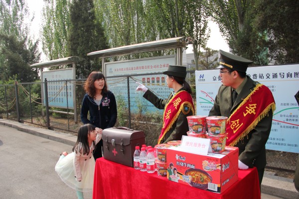 “五一”小長假期間,京張高速沙城收費(fèi)站組織開展了“奉獻(xiàn)愛心,服務(wù)社會(huì)”便民服務(wù)活動(dòng)。在站區(qū)醒目位置設(shè)立了“便民服務(wù)臺(tái)”,免費(fèi)為過往司乘人員提供飲用開水、方便面、礦泉水和常用急救藥品,耐心地為司乘人員答疑解難和指示行車路線,并根據(jù)司乘人員的需要發(fā)放懷來周邊旅游景點(diǎn)圖200多份,贏得了過往司乘人員的一致好評(píng)。(沙城收費(fèi)站 高麗贇)