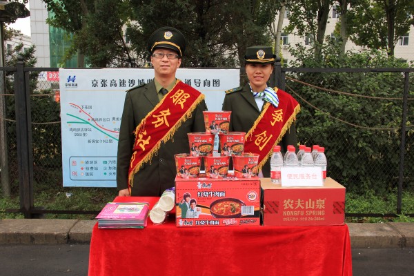 “十一”黃金周期間,沙城收費站為真情回報司乘組織開展了便民服務活動。后勤人員取消休假,在站口醒目位置設立了“便民服務臺”,為過往的司乘人員提供飲用開水、方便面、礦泉水、周邊地區(qū)簡易地圖、修車工具、常用急救藥品、針線包等物品,并耐心地為司乘人員指示行車路線,竭盡所能地為過往的司乘們答疑解難和提供優(yōu)質(zhì)服務?粗境藗儩M意的笑臉,聽著他們充滿肯定的話語,大家的心里暖暖的。這是對沙城收費站便民服務活動最大的肯定,更是對全體職工進一步做好各項工作的最大鼓舞。沙城收費站全體職工一定會在各級領導的正確領導下,以更加優(yōu)質(zhì)周到的服務真情回報司乘,回報社會。(沙城收費站 高麗贇)
