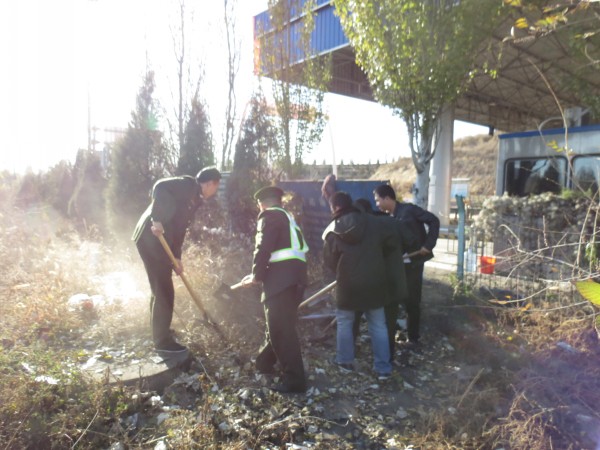 活動(dòng)當(dāng)天,收費(fèi)廣場(chǎng)到處可見(jiàn)職工忙碌的身影,有的倆三人一組用抹布擦洗收費(fèi)亭墻壁、門窗及防護(hù)網(wǎng);有的用掃帚清掃廣場(chǎng)、車道的落葉、煙頭和紙屑;有的用鐵鍬清除綠化帶、溝渠、旱廁及垃圾池周邊的雜草、碎石及生活垃圾;有的拾撿草叢中的白色垃圾。經(jīng)過(guò)大家近一個(gè)半小時(shí)緊張有序的清理,站口環(huán)境面貌煥然一新。