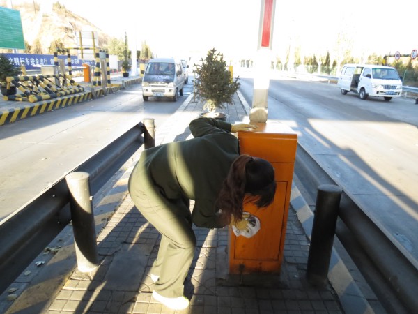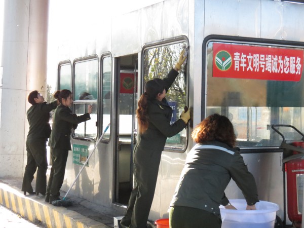 本次大掃除重點(diǎn)針對(duì)收費(fèi)區(qū)域內(nèi)收費(fèi)亭、安全島、防撞柱及機(jī)電設(shè)備進(jìn)行保潔;對(duì)綠化帶雜草、溝渠白色垃圾進(jìn)行清理;對(duì)收費(fèi)廣場(chǎng)、車道飄落樹葉集中收集清運(yùn);對(duì)旱廁、定點(diǎn)垃圾池周邊環(huán)境衛(wèi)生死角進(jìn)行集中整治。