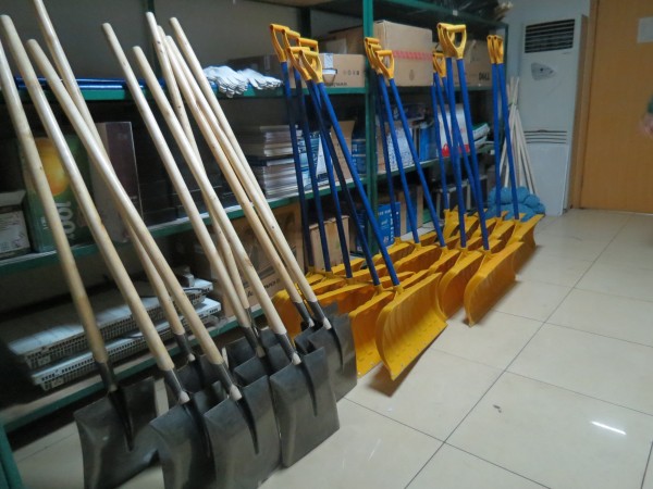 截止目前,新推雪板、鐵鍬共計30余把全部組裝就緒,同時對原有損壞的推雪板、鐵鍬、大掃帚進行捆綁加固。現(xiàn)庫存推雪板達(dá)到40把,鐵鍬15把、大掃帚15把。融雪劑30袋已全部擺放到位。各項除雪物資準(zhǔn)備工作已經(jīng)全部完成。(下花園收費站 耿海亮)