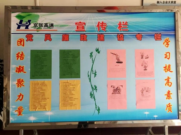 宣傳欄主要體現(xiàn)了兩個特點:一是主題鮮明。主要以黨風廉政建設和反腐倡廉工作為題材,把思想教育和加強作風建設打造為民、務實、清廉的黨員干部隊伍結合起來,做成弘揚正氣的宣傳陣地;二是形式多樣。宣傳欄通過張貼反腐倡廉文章、廉政格言警句、漫畫等,不斷豐富廉政宣傳內(nèi)容。