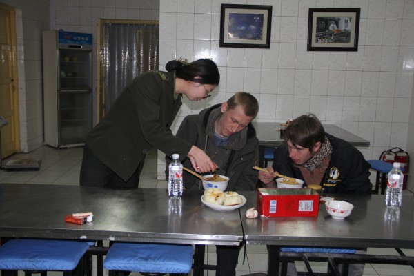 當天下午六時許,天色已有些暗了,正在值崗的收費二班班長韓玉新發(fā)現(xiàn)收費廣場有兩人東張西望、徘徊不前,便上前詢問,見到收費員后,兩位肩背背包,風塵仆仆的“老外”十分急切,連比帶劃地試圖與韓玉新交流,無奈言語不通,也不知他們想表達什么,見此狀況韓玉新立即上報值班站長,并將兩人帶至“司機之家”。值班站長張海鵬、姜保勇聞訊立即到場,并找來英文較好的收費員郝潔擔任翻譯,原來,這兩名外國人來自俄羅斯,22歲,途經(jīng)蒙古國,旅行至此,身上所帶的錢所剩無幾,且一天沒有進餐,下一站想到首都北京旅游。