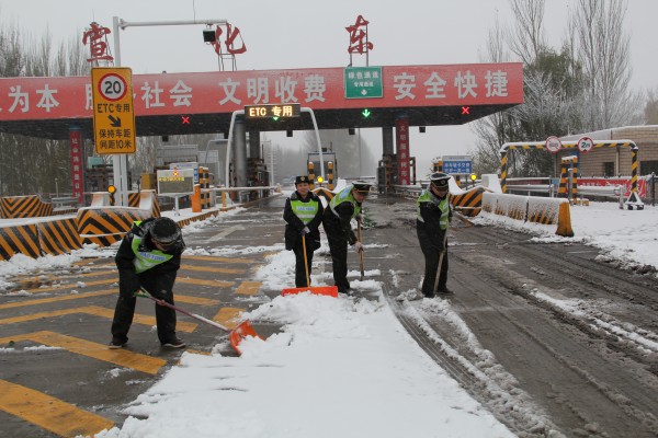 早8時(shí),雪勢稍小,值班站長立即帶領(lǐng)當(dāng)班收費(fèi)員及后勤人員對收費(fèi)車道及廣場積雪進(jìn)行清掃。大家手持除雪鏟、鐵鍬、掃帚等除雪工具,簡單分工以后,按照先車道后廣場的順序有條不紊的忙碌著,經(jīng)過近兩個(gè)小時(shí)的奮戰(zhàn),所有車道積雪被全部清除,廣場和車道都撒上了融雪劑。清掃完收費(fèi)廣場以后,大家再次發(fā)揚(yáng)不怕苦、不怕累的奉獻(xiàn)精神,一鼓作氣對站區(qū)積雪進(jìn)行了清掃。臨近中午,收費(fèi)廣場及站區(qū)積雪被全部清除完畢,宣化東收費(fèi)站圓滿完成今冬首場除雪保暢任務(wù)。(宣化東收費(fèi)站 趙海濤)