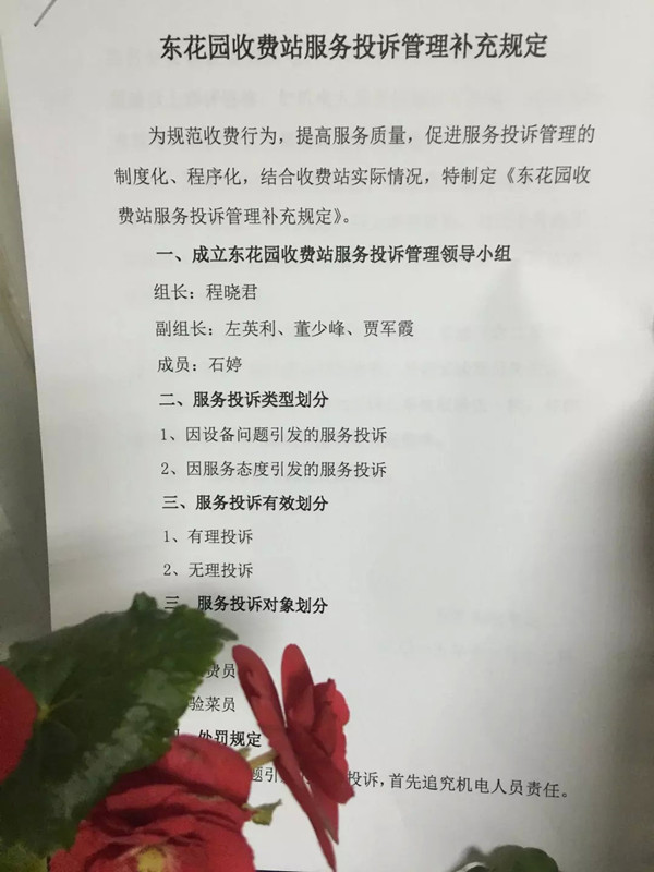 為規(guī)范收費行為,提高服務(wù)質(zhì)量,促進(jìn)服務(wù)投訴管理的制度化、程序化,近日結(jié)合實際情況,東花園收費站出臺《服務(wù)投訴管理補充規(guī)定》。