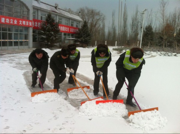 12月13日夜間華北大地普遍降雪。12月14日一早,東花園收費站駐站員工自發(fā)到內務室領取除雪工具及溫暖手套,在無劃分除雪責任人和責任區(qū)的情況下,三五一組積極投身到除雪保暢中。大家有的用推雪板推、有的用笤帚掃、有的灑溶雪劑、有的擺放標志牌干得不亦樂乎。不到兩小時的時間,收費廣場、站區(qū)院落就變回了原色?粗鴷惩ò踩男熊嚟h(huán)境,大家表示所有的付出都很值得。(東花園收費站 姜曉麗)