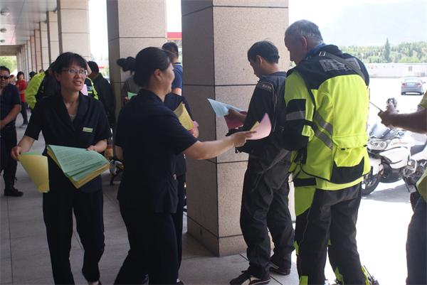 6月16日服務(wù)區(qū)組織了安全生產(chǎn)宣傳咨詢?nèi)栈顒,在服?wù)區(qū)南北區(qū)廣場講解發(fā)放“高速安全出行常識”“高速公路夏季安全行車特別提醒”等宣傳單頁,受到廣大司乘人員的歡迎。