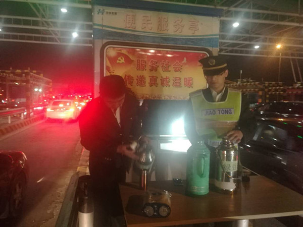 緩慢行駛的車流,一閃一閃的尾燈,點綴著似藏青色的夜空,國慶節(jié)小長假第四天的夜晚,因返京車輛逐漸增多,并且多地發(fā)生追尾事故,東花園主線站入京車流量較大,值班站長吳占強迅速組織黨員干部及備勤人員到崗,在收費廣場醒目位置設立了便民服務臺。堅守在一線的黨員干部及職工們以“有我堅守、為你護航”的工作信念,細致周到的服務熱情,為過往司乘人員提供飲用水、藥品、路況信息等多項便民服務,耐心地為司乘人員答疑解難和指示行車路線,贏得了過往司乘的一致贊譽,使司乘人員行駛京張高速一路無憂。(東花園收費站 王燕吉)