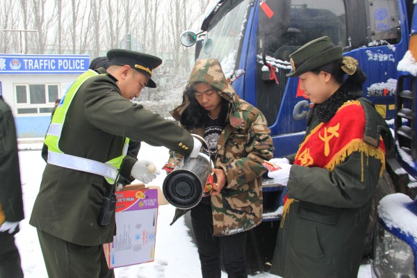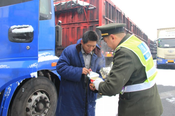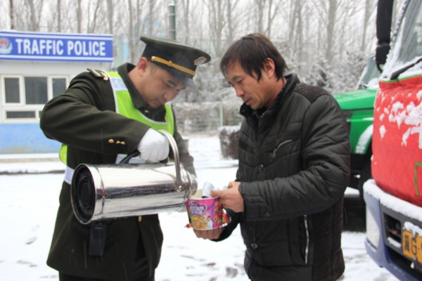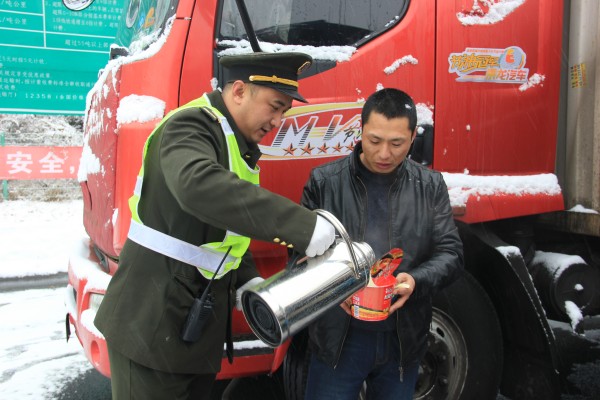 由于積雪封路,00:25分,高速交警正式通知封道,導(dǎo)致大量貨車在上道站口滯留。沙城收費(fèi)站本著全心全意為司乘人員服務(wù)的宗旨,積極開展送溫暖延伸服務(wù)活動(dòng)。職工們穿梭在車流中,為滯留司乘免費(fèi)提供方便面、火腿腸、榨菜和飲用開水,還為司乘送上熱乎乎的泡面,耐心地為司乘人員答疑解難和指示行車路線,以優(yōu)質(zhì)周到的服務(wù)贏得了過往司乘的一致贊譽(yù),樹立了河北高速公路的服務(wù)品牌。(沙城收費(fèi)站 高麗贇)
