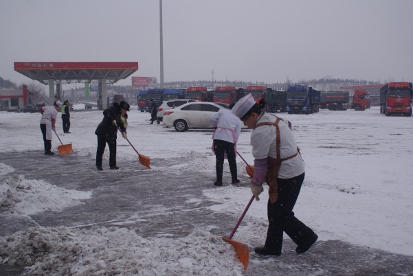 2月21日9點(diǎn)40分,下花園地區(qū)迎來2017年的第一場(chǎng)中雪,不到半個(gè)小時(shí)整個(gè)服務(wù)區(qū)都被積雪給覆蓋了,為了確保服務(wù)區(qū)廣場(chǎng)停車安全暢通,各營(yíng)業(yè)場(chǎng)所有序開展工作,服務(wù)區(qū)第一時(shí)間準(zhǔn)備好除雪的各項(xiàng)準(zhǔn)備工作。下午2點(diǎn)時(shí)分雪停了一會(huì),除雪保暢應(yīng)急小組隊(duì)員即刻按分工負(fù)責(zé)到現(xiàn)場(chǎng),做好各部門的除雪保暢工作,保安人員則在廣場(chǎng)有序的指揮車輛停放,保障出入的車輛安全暢通。(下花園服務(wù)區(qū) 黃雪梅)