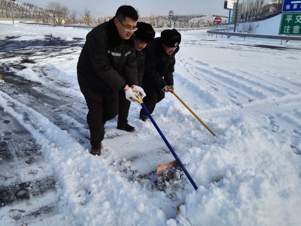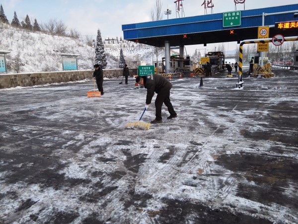 下花園收費(fèi)站齊心協(xié)力除雪保暢