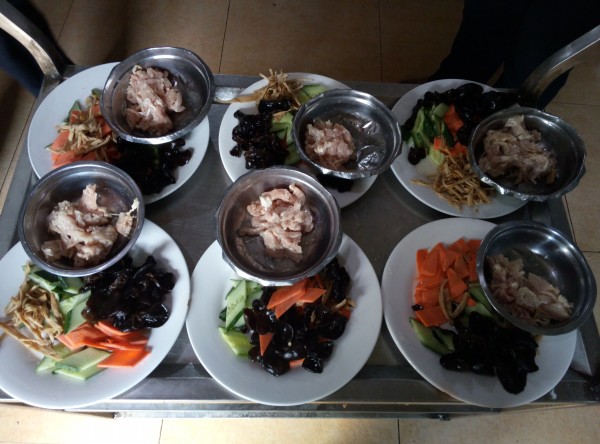 配菜考核內容為刀工和抓菜,其中刀工考核切土豆絲,抓菜考核木須肉。