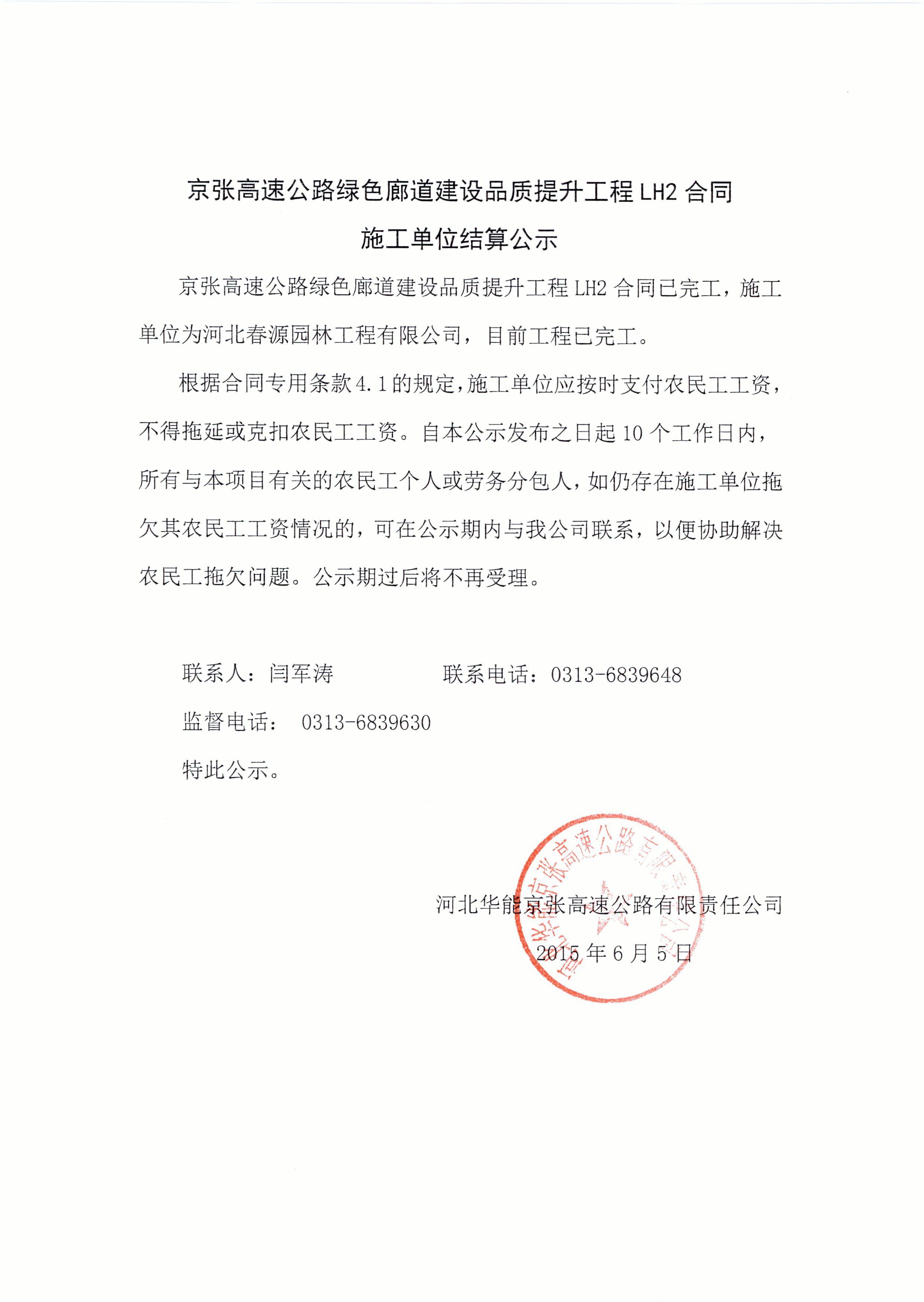 京張高速綠色廊道綠化二標結(jié)算公示