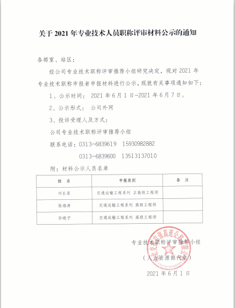 關(guān)于2021年專業(yè)技術(shù)人員職稱評(píng)審材料公示的通知